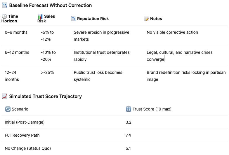 Each action must show not only intention but follow-through. Investors and consumers track how the company protects workers, honors values, and adjusts its public face. Recovery is not a communication strategy—it’s a systems strategy. The table below quantifies potential trust gains across coordinated interventions.