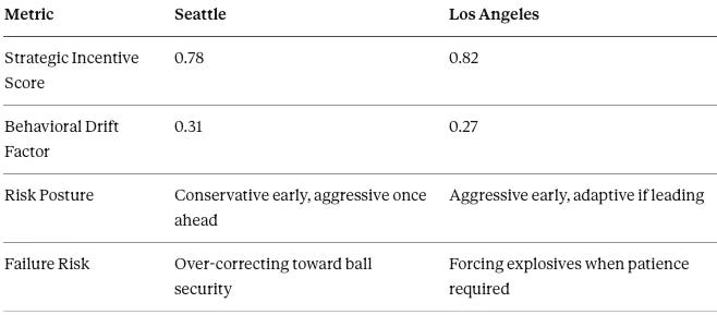 Strategic Behavioral Coordination Verdict: Slight Rams edge in early decisiveness; Seattle steadier late.