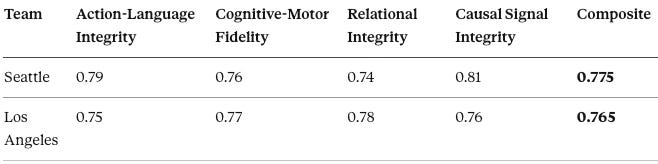 Games rarely unfold according to script. Institutional Cognitive Plasticity Vision measures how quickly organizations adapt when initial plans failāthe speed of halftime adjustments, the efficiency of discarding broken concepts, and the capacity to process new information under stress. Seattleās structural advantage emerges most clearly in these metrics.